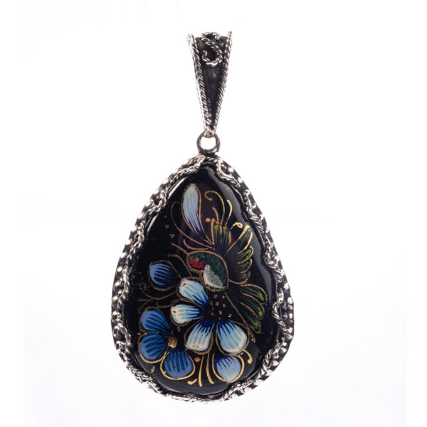 Pieza única Colgante plata mexicana 925 con piedra ónix pintados a mano piezas hechas con manos de artesanos mexicanos.