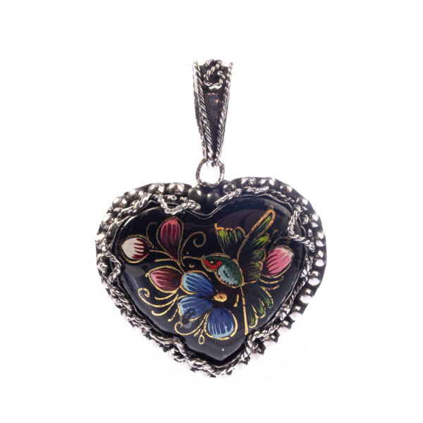 Pieza única Colgante plata mexicana 925 con piedra ónix pintados a mano piezas hechas con manos de artesanos mexicanos.